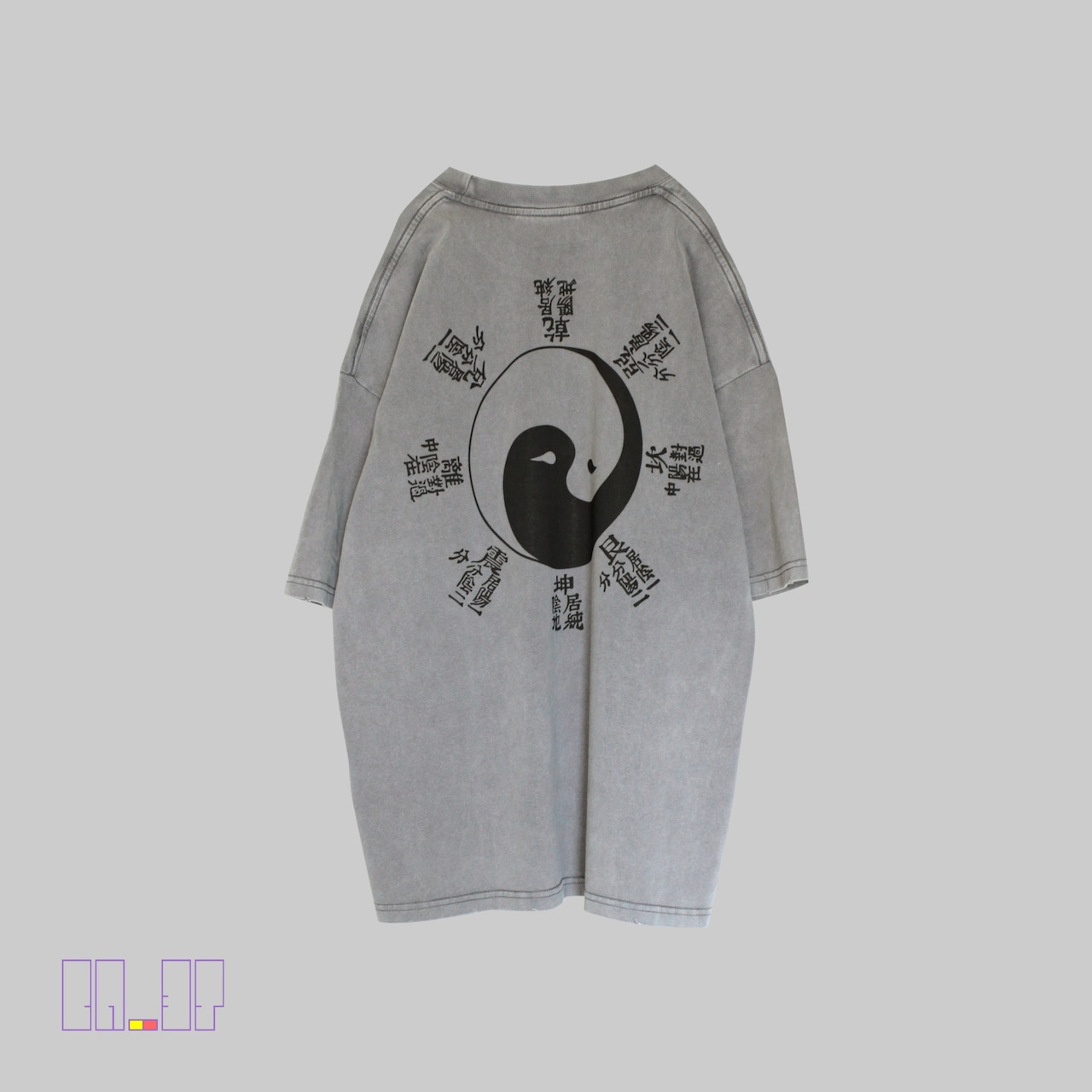 【 陰陽太極 * 古代宇宙科学 】 BR_3T X Ancient Chinese wisdom / Yin yang TEE Shirt - mens [ 八卦 * 易教 ] 古代中国 Tシャツ グレー トップス 風水 陰陽五行 伏犠 新品