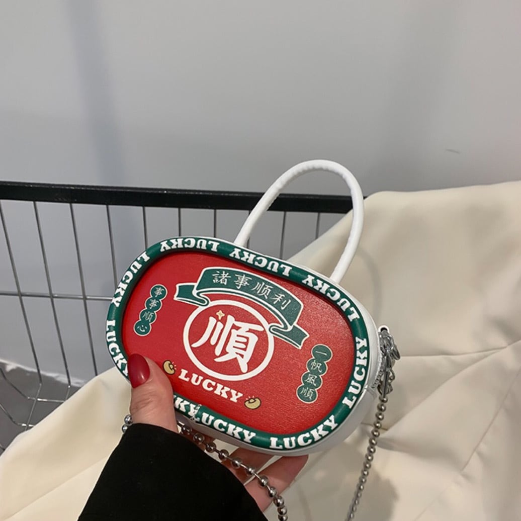 【 開運 チャイナバッグ 】 mahjong Chinese crossbody & mini bag / 中華レトロデザイン ポーチバッグ ミニバッグ チェーン クロスボディバッグ ポシェット PU素材 フェイクレザー 合皮 赤 白 レディース 原宿 韓国 K-POP 風水 金運 お洒落