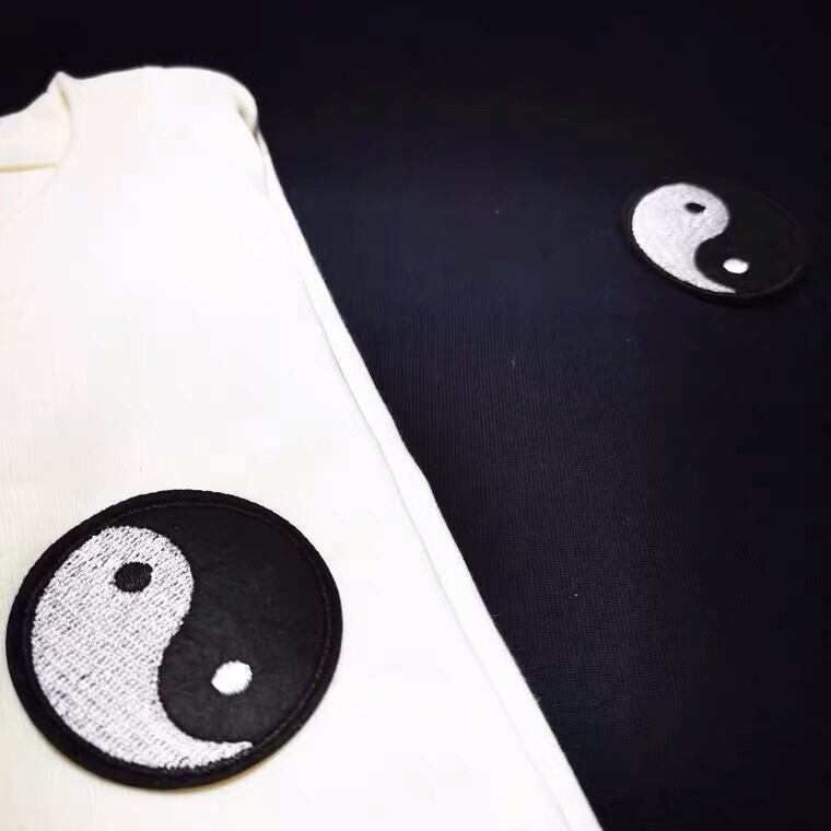 【 陰陽 ★ Tシャツ】Chinese ying yang embroidery Tee shirt / 東洋思想 太極 易 刺繍 Tシャツ チャイナシャツ Tシャツ 半袖 メンズ レディース 黒 白 S M L XL トップス ロゴ ワンポイント ゆったり オーバーサイズ 昭和レトロ 古代文明 原宿 サイバー 風水 新品