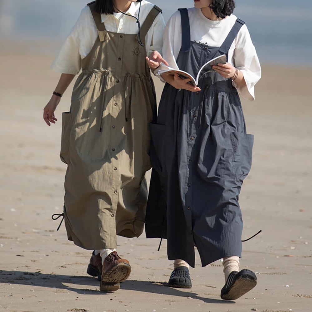 【 ノースリーブ ★ ワンピース ★ ミリタリーカーキ 】sleeveless long dress one piece military khaki / ゆったり カジュアル ロングワンピース スカート ベージュ レディース アウトドア キャンプ 原宿 かわいい おしゃれ フェス